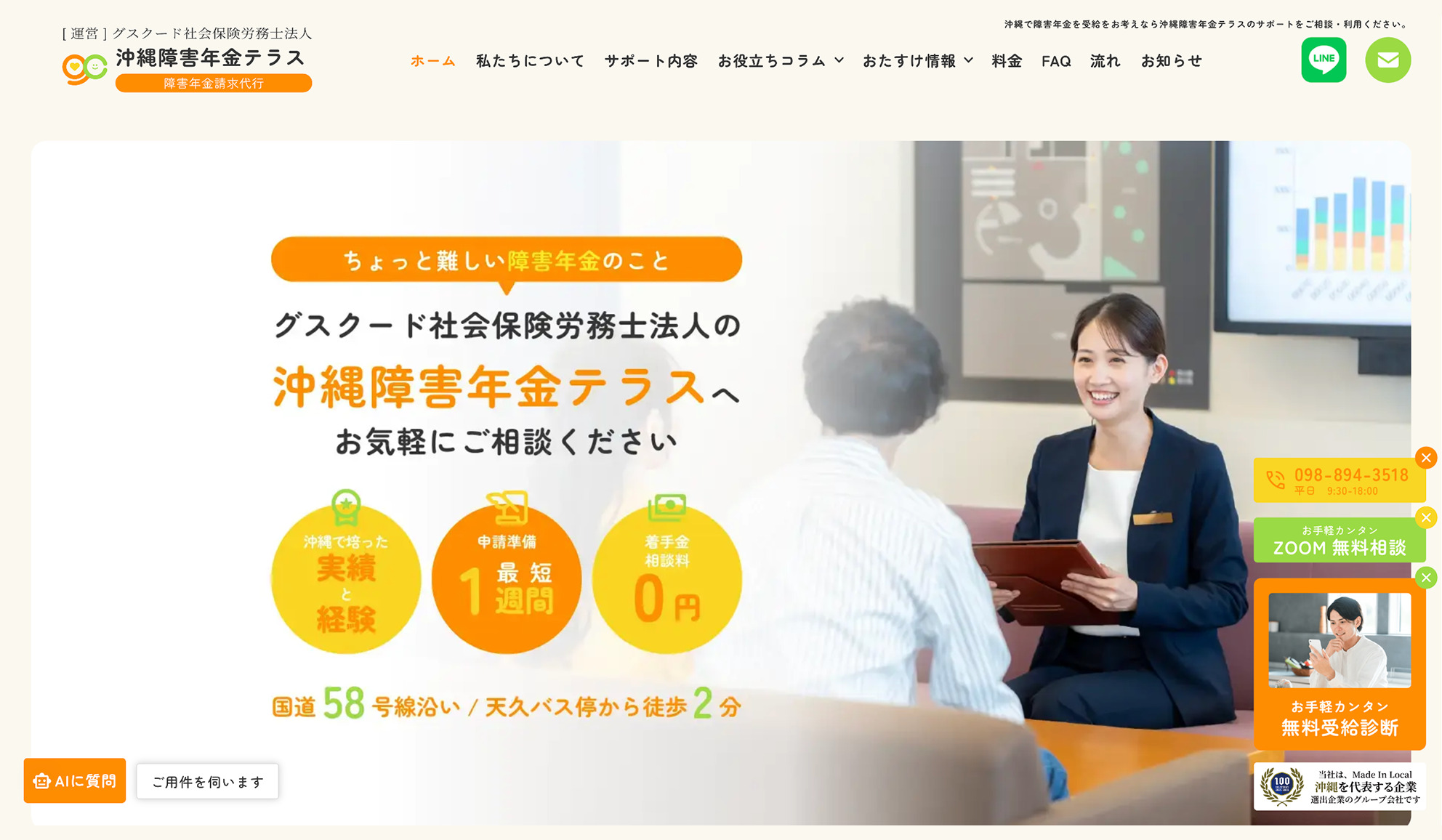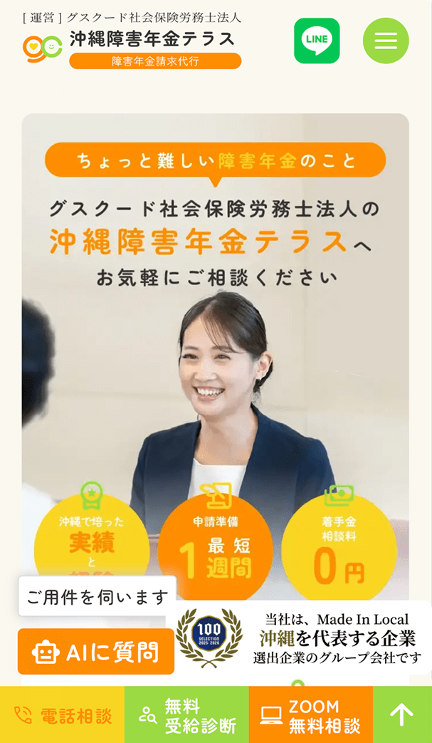 グスクード社会保険労務士法人が運営する「沖縄障害年金テラス」のサービスサイトを制作いたしました。